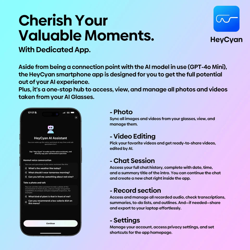 Commandes vocales : Activez l'IA avec « Hey, Cyan ».